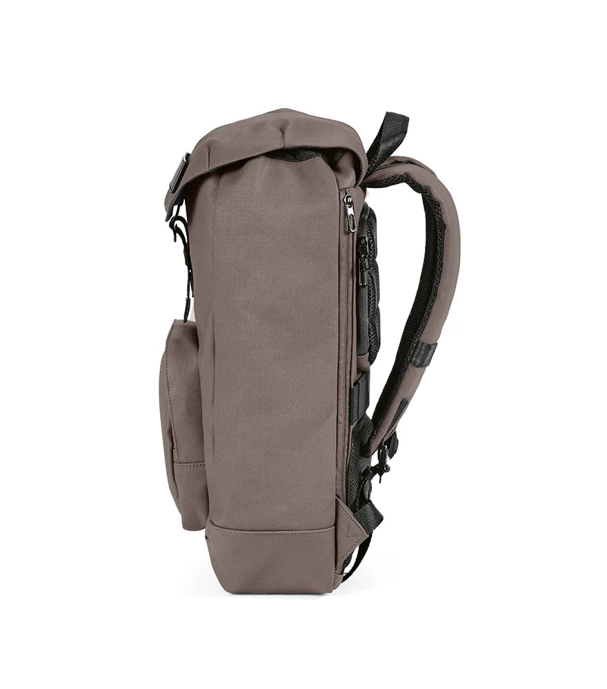 This 20L backpack is made of 240gsm recycled cotton canvas with a PU coating, making it water-resistant. It has a large capacity, with a "G" buckle making the closing unique. A detachable front patch so customise. Complete with a smaller front zippered pocket.