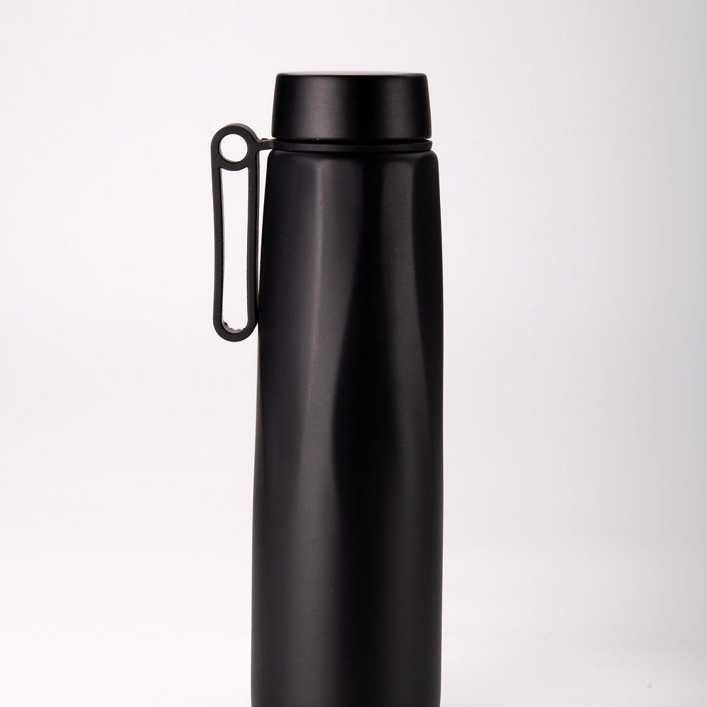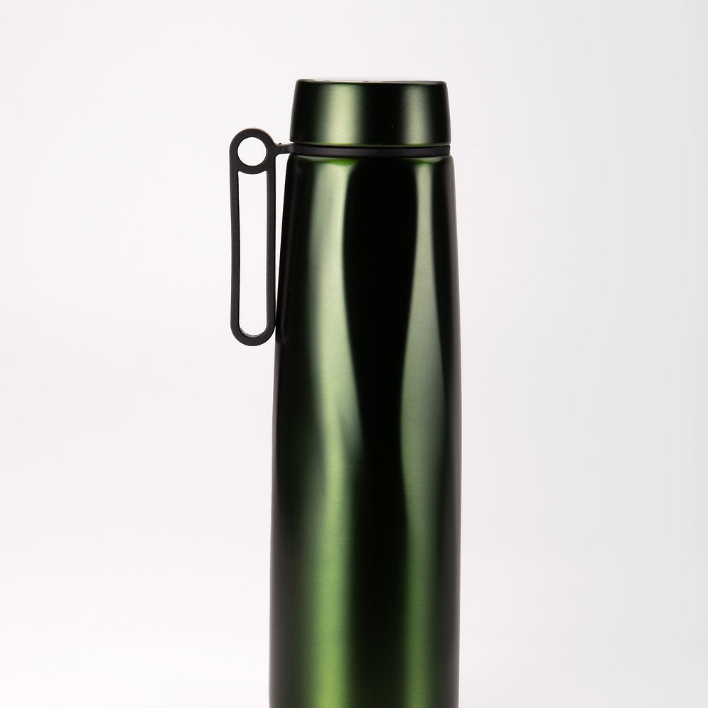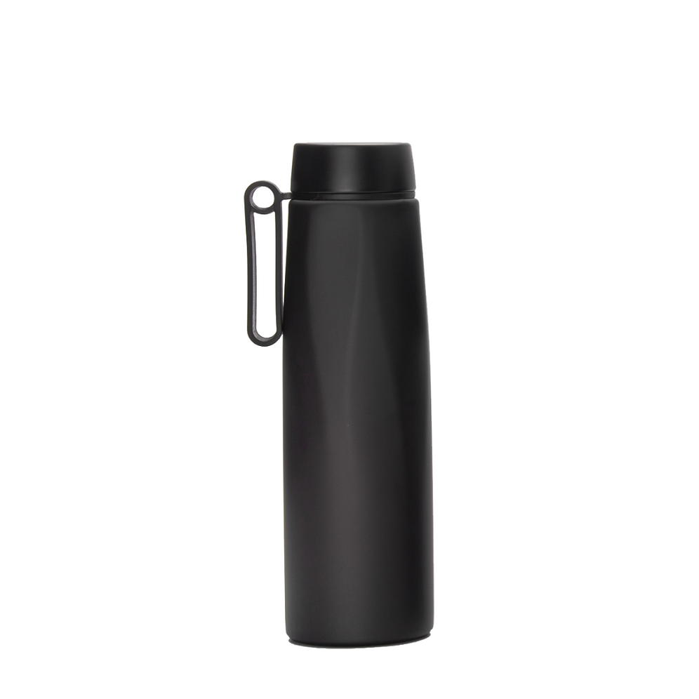 Introducing the Calypso Pro Flask, a remarkable blend of cutting-edge design, eco-conscious materials, and exceptional functionality. This flask features a double-wall construction and an ergonomic design with a rotating handle for a comfortable and secure grip. Its geometric shape adds modern elegance, setting it apart from ordinary flasks. Crafted from recycled stainless steel, the Calypso Pro ensures durability while reducing environmental impact. Its impressive insulation capabilities keep beverages hot or cold for up to 18 hours, allowing you to enjoy your drinks at the perfect temperature, anytime, anywhere. With a generous size of 22.4x6.7 cm (diameter), it provides ample capacity for your hydration needs throughout the day. The Calypso Pro comes packaged in a sustainable Kraft Paper Box, reflecting our commitment to eco-friendly packaging solutions.