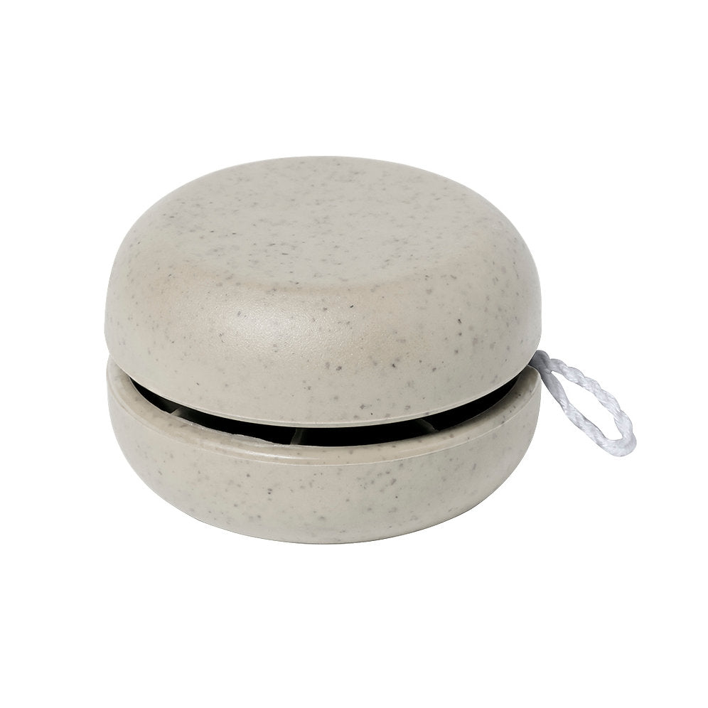 Fun yo-yo made of resistant wheat straw., to recall the most entertaining classic games. Available in a variety of bright colours. With a 100 cm, cotton braided yarn in white.