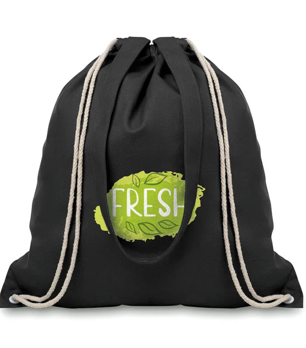 Canvas shopping bag with long handles and drawstring. 220 g/m².