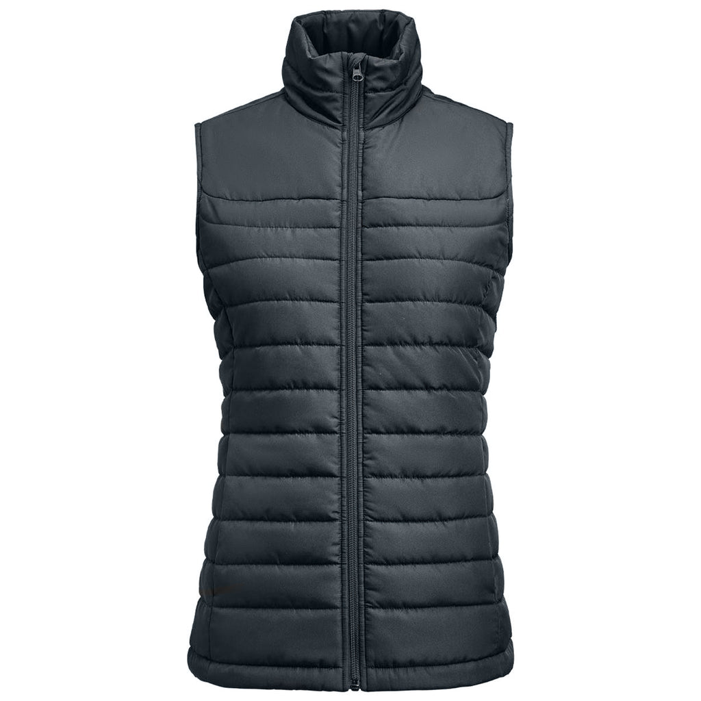 The Arches Women’s padded vest is made from recycled polyester, a PFAS-free water-repellent finish and is designed to offer unparalleled comfort, functionality, and retain warmth. It features seam-hidden zipped pockets and an adjustable hem with an elastic drawcord. It also features an inside zipped pocket to secure essentials and a chin protector for enhanced comfort.