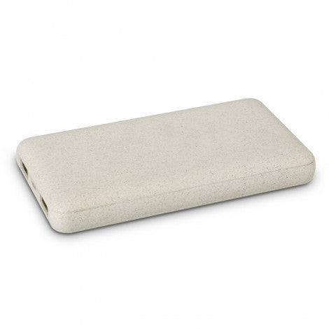 Smart 10,000mAh power bank made with a blend of wheat straw fibre and ABS plastic. The power bank features a LED power gauge and has two USB-A outlets, meaning it can charge two devices at the same time. An optional EVA carry case and a triple connector cable are available on request..