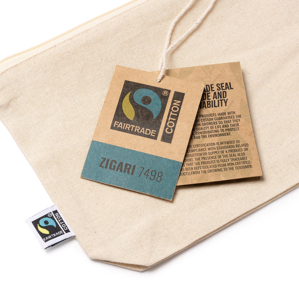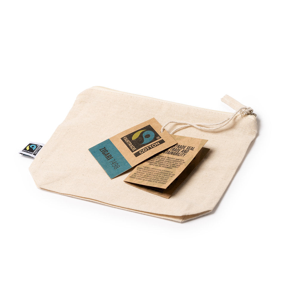 Multifunctional toilet bag in 100% Fairtrade cotton (180 gsm). Main pocket with matching zip and puller.